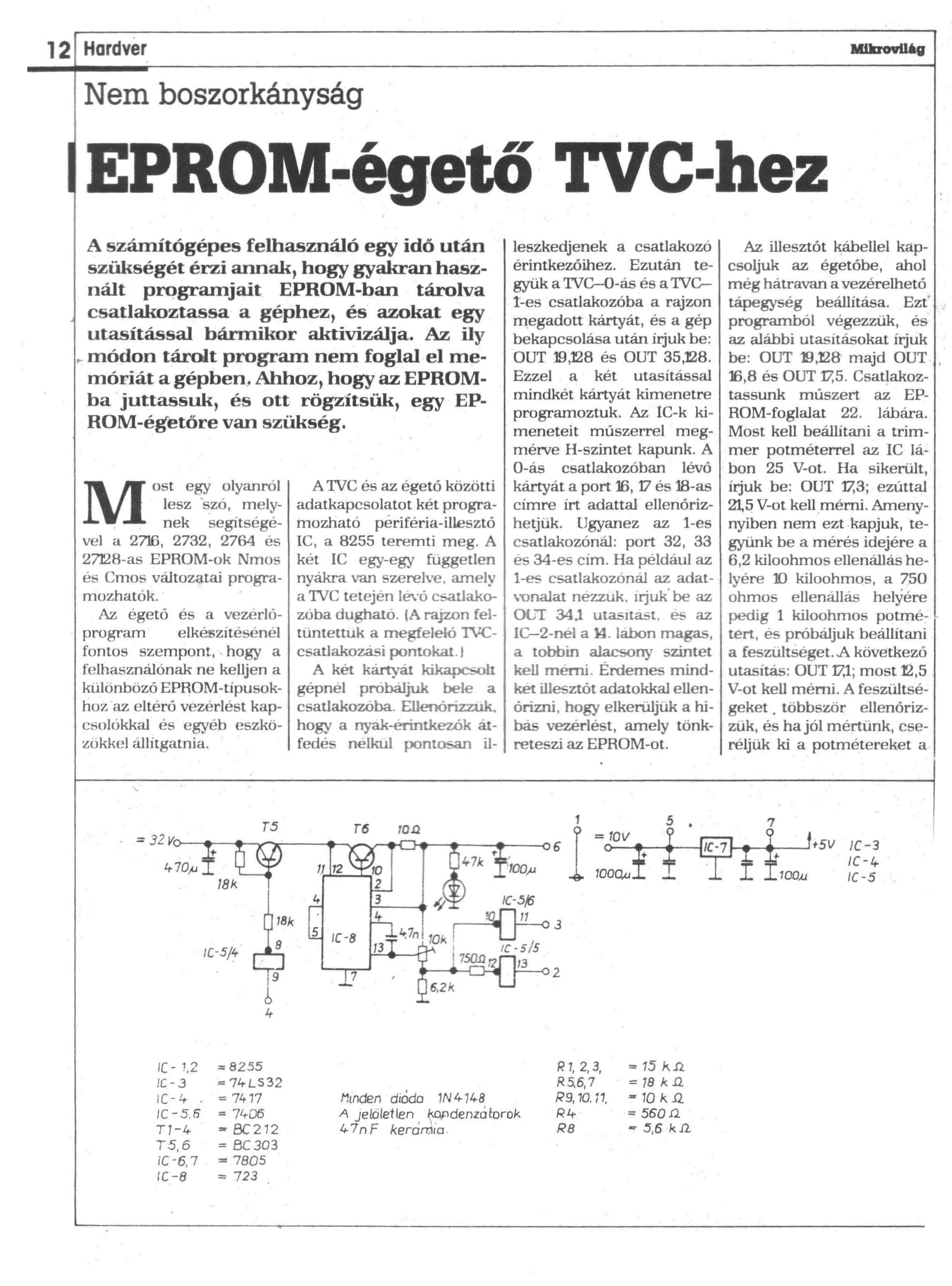 Tombor Márton tollából egy EPROM égető hardver kapcsolási rajza a TVC-hez.