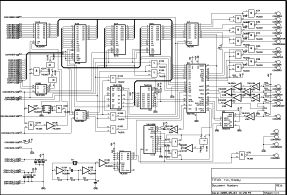 A lassú periféria jelzésére szolgáló áramköri részletet elhagytam. (Ez a csatlakozó pont egyébként is csak a 32kB-os gépeken volt használva.) A felszabaduló TTL kapukat más részekhez csoportosítva és egy kis trükközéssel néhány IC-t még meg lehetett spórolni.