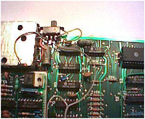 Az előkészített kapcsolót a helyére be kell forrasztani a modulátor oldalánál, vigyázva, hogy a többi alkatrész lábához ne érjen hozzá. (Egy elektrolit kondenzátor negatív lába van ott "rossz helyen", azt célszerű elhajlítani az útból.) A Kapcsoló szélső érintkezőire menő vezeték egyikét testre, (pl. a modulátor háza) a másikat a +5V-os tápfeszültségre (pl. szomszédos IC 14-es lába) kell kötni.