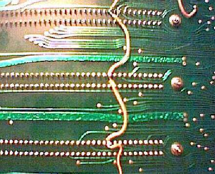 A HBA, és a HBA-2 rajzokat összehasonlítva két, egyik panelon sem használt kártyacsatlakozó lábat találtam, a B6, és a B33 pontokat. Én (önkényesen) a B33-as pontot használtam a saját gépemnél. Kényelmi okból, hogy ne számítson, hogy melyik helyre van bedugva (a pillanatnyilag még nem létező) disk-csatolóm, mind a négy kártyacsatlakozónál bekötöttem ezt a lábat.
