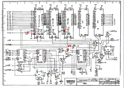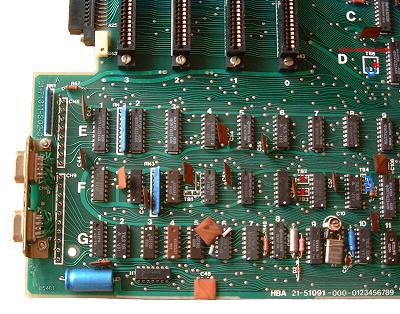 A fenti kapcsolási-rajz részleteket összehasonlítva látható, hogy a HBA-2 gépben a DA7-es memóriacímző vonal jele két másik (lap címző) jellel "összekapuzva" jut a memóriára. Ezt a kiegészítő áramkört nekünk is be kell építenünk, amennyiben HBA panelünk van, és VTDOS üzemmódot akarunk a floppy-val használni. Az átalakításhoz egy 7402 típusú (TTL) IC-re van szükségünk, amelyet előkészítve építünk be.