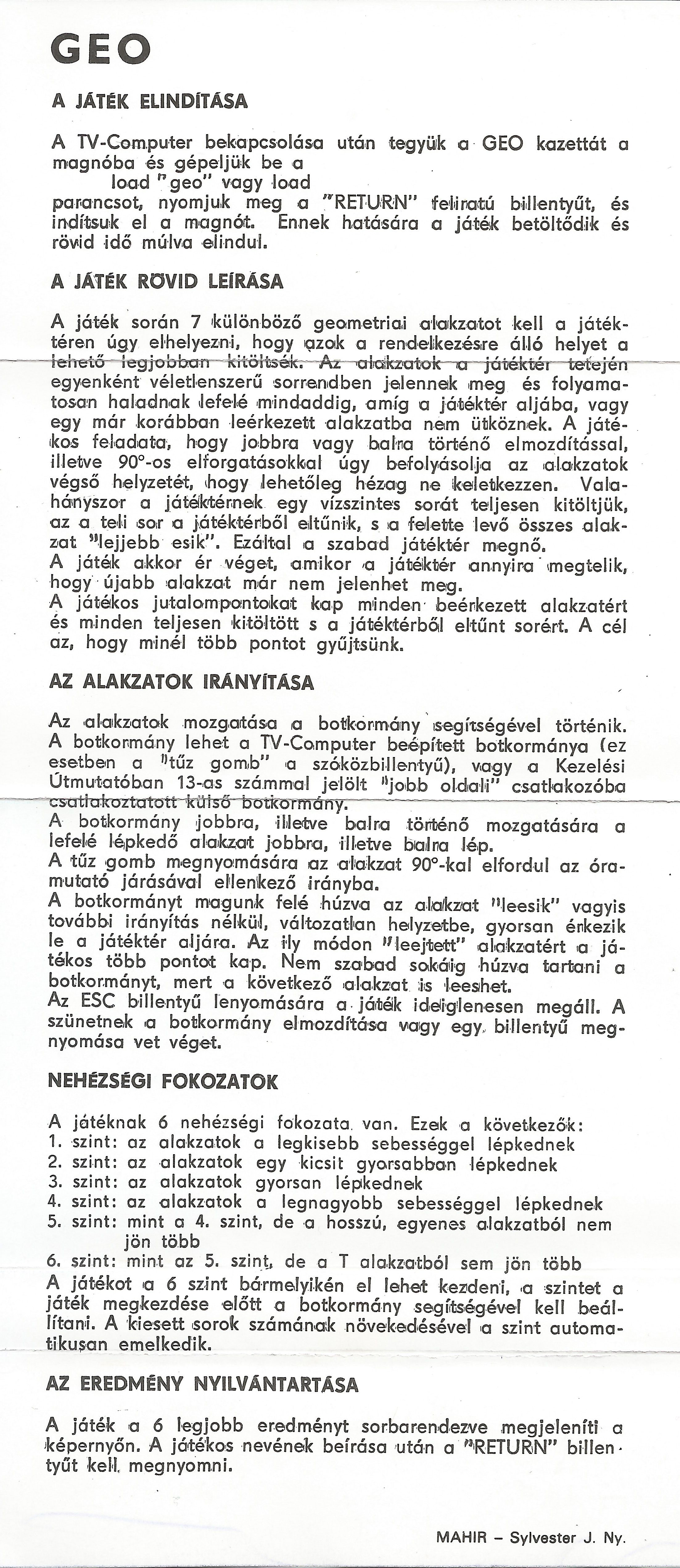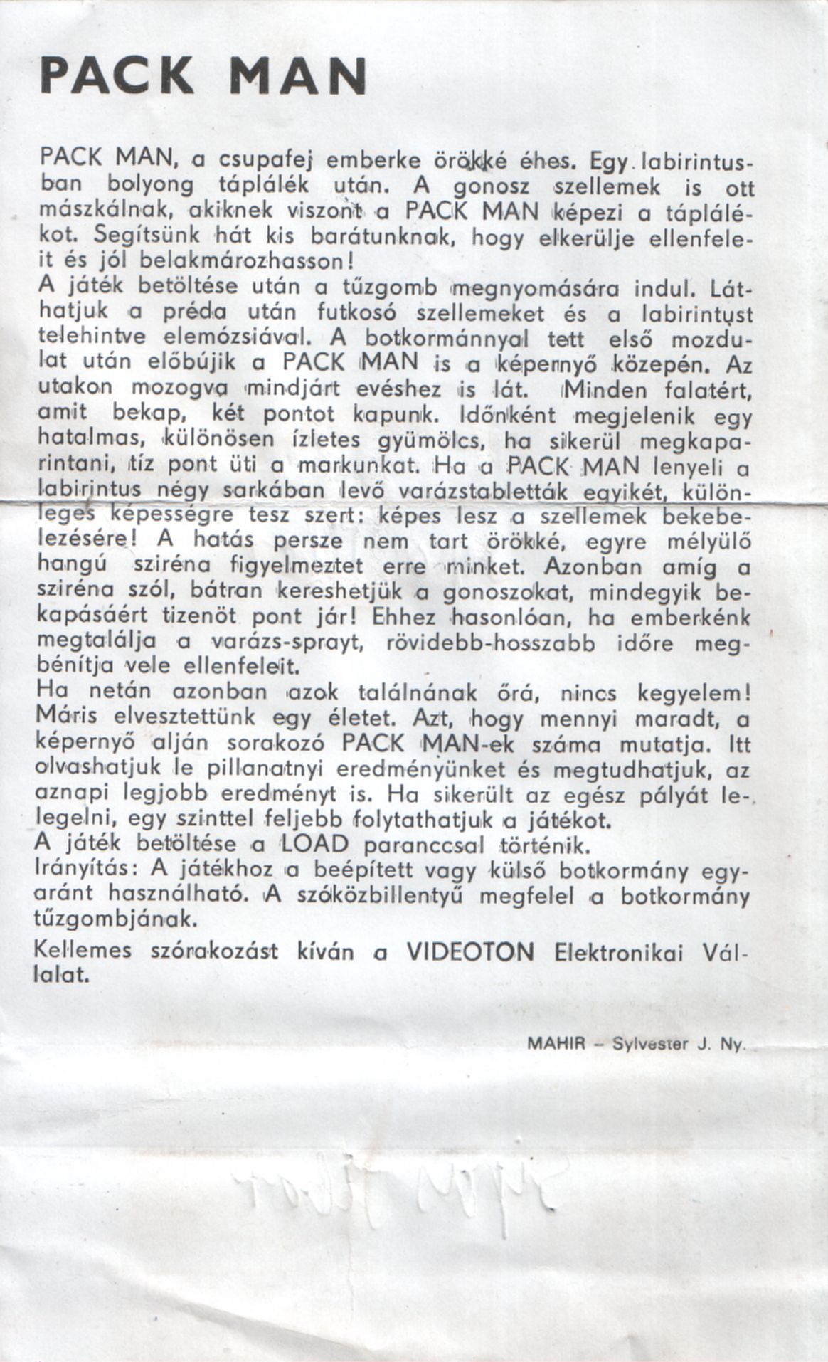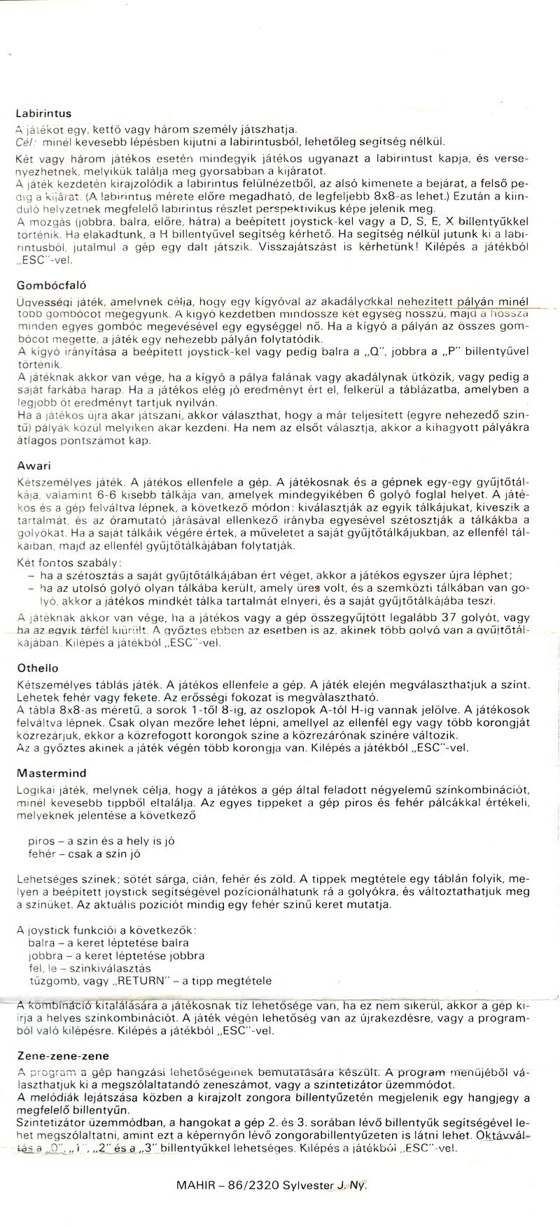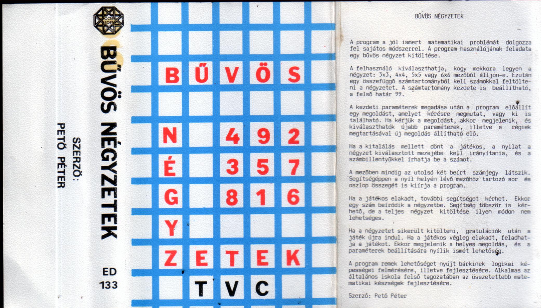 | Program neve/tipusa: | Borító | Kazetta | Eredeti prg. | Egyéb+ |